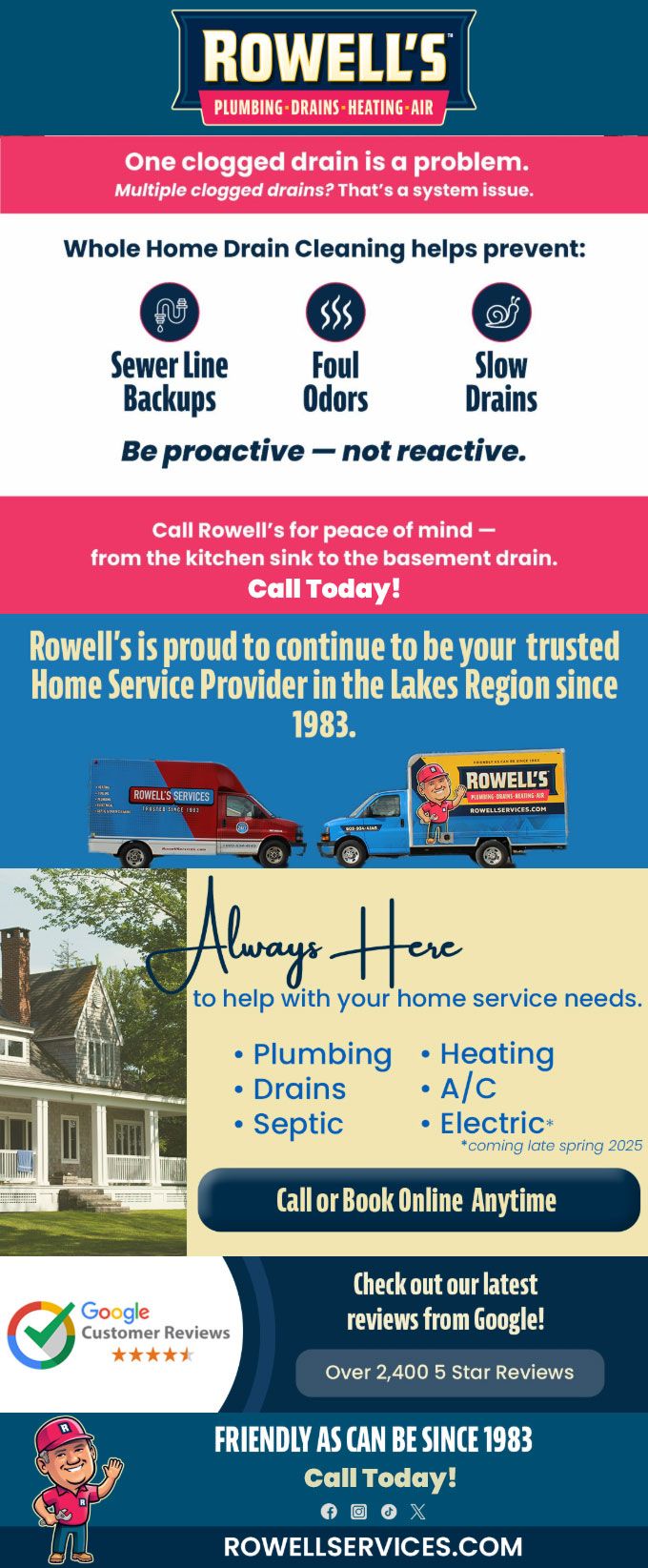 Rowell's is proud to continue to be your trusted Home Service Provider in the Lakes Region since 1983.